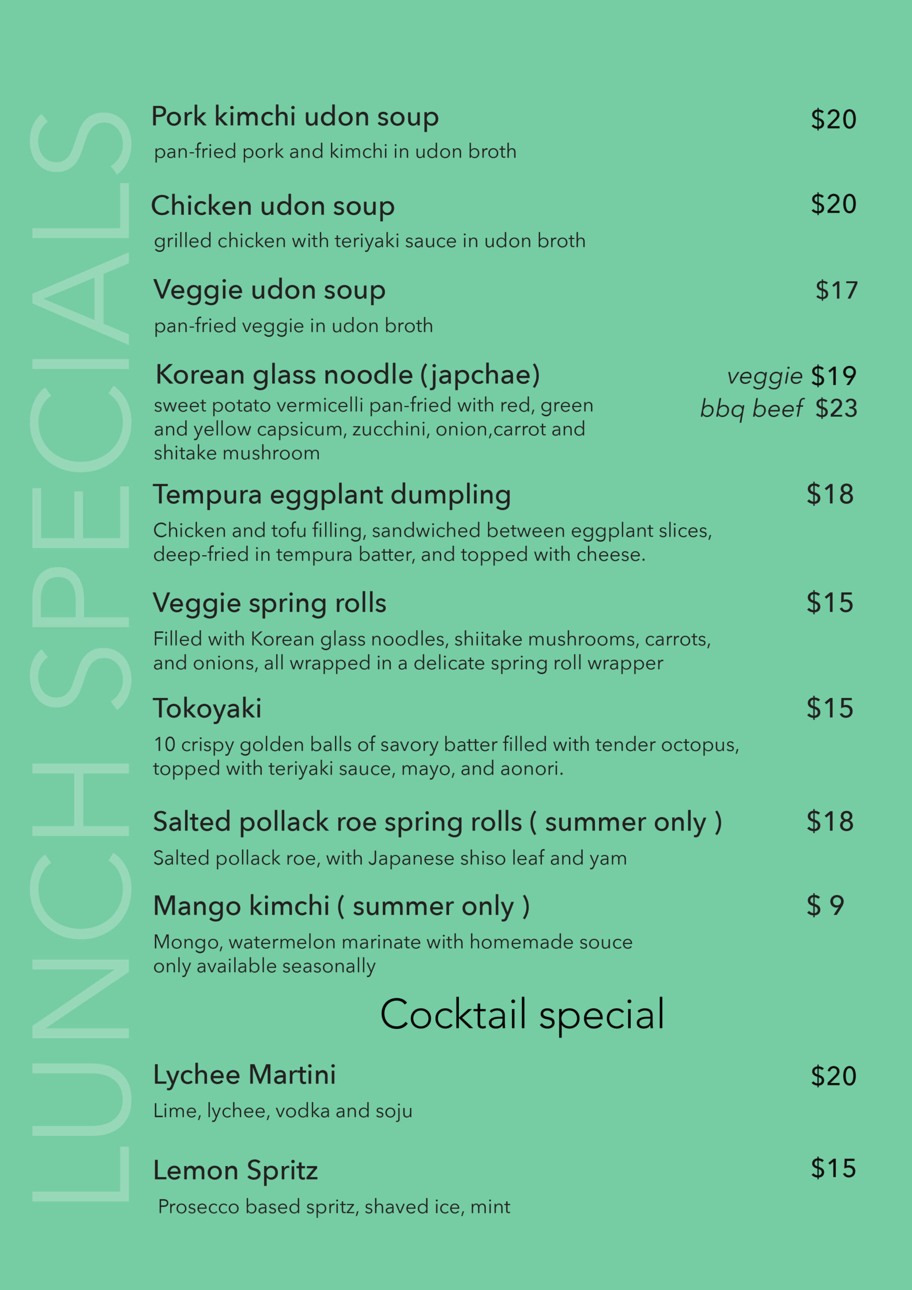 Lunch menu
