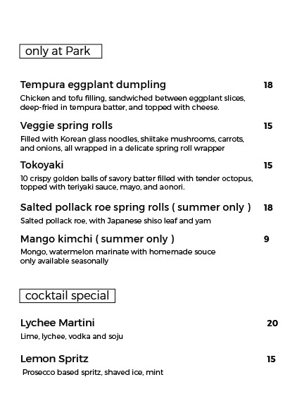 lunch & bar menu